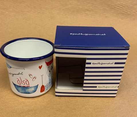 Sublimačné plechové hrnčeky v kartónovéj krabičke s vlastnou potlačou:
